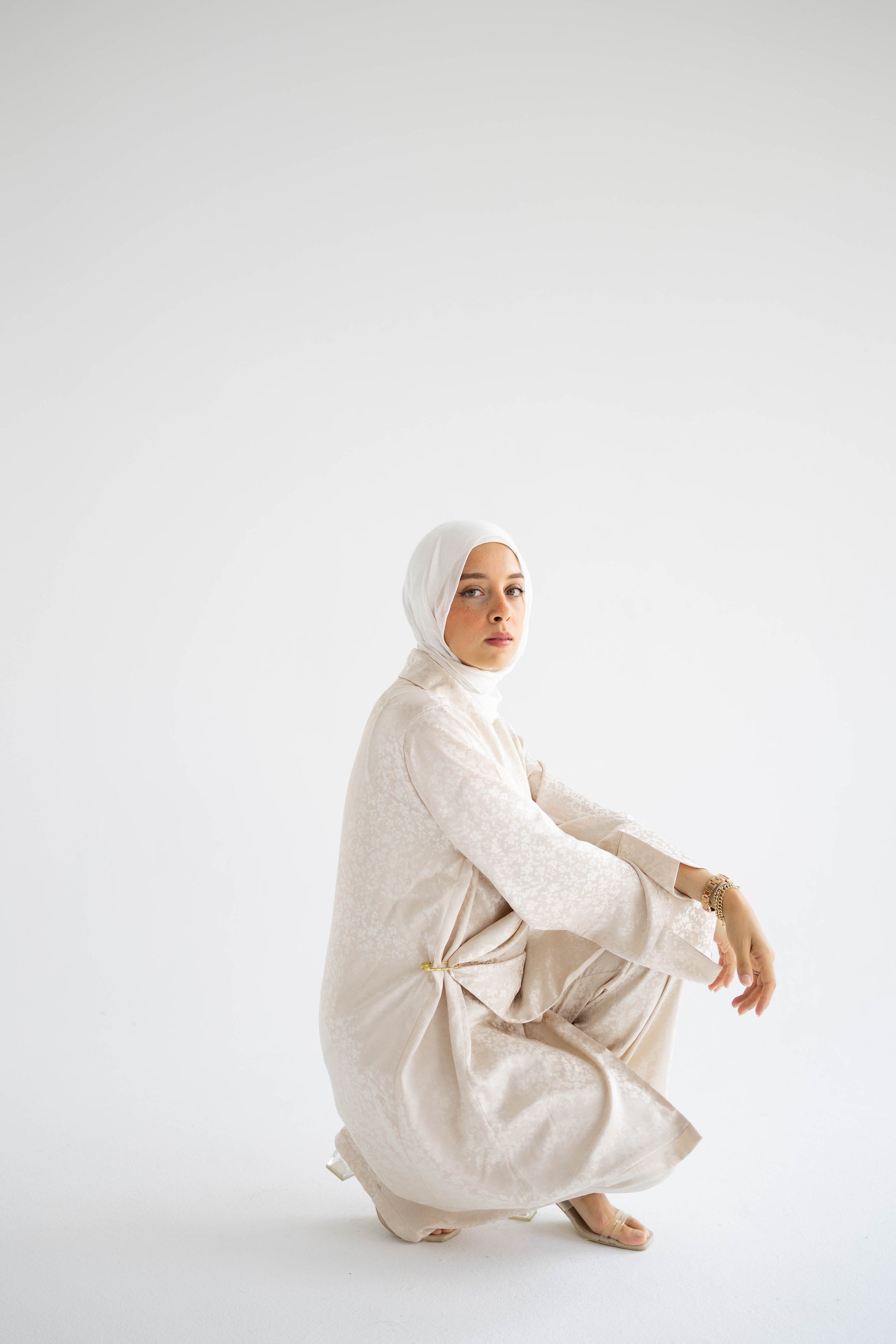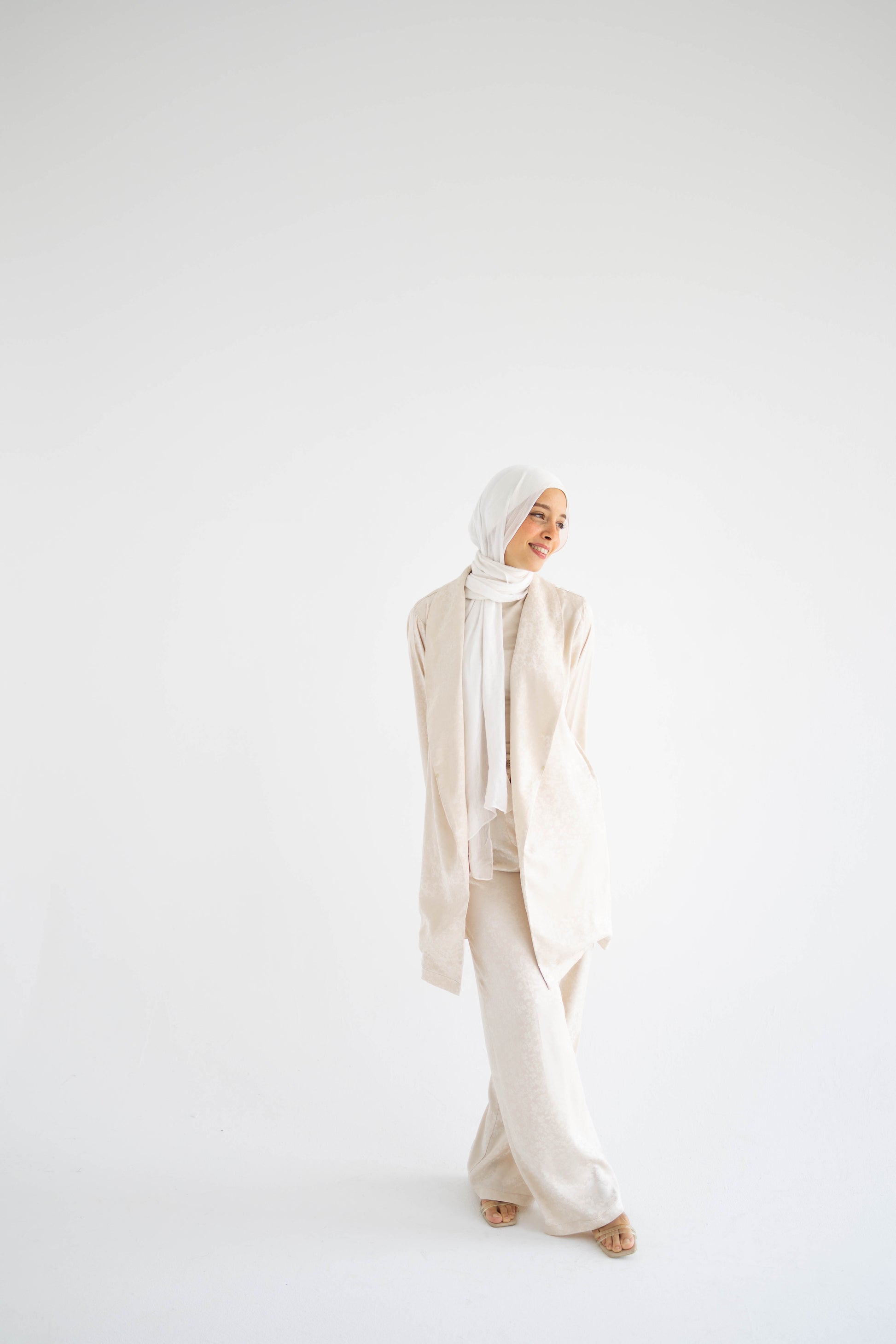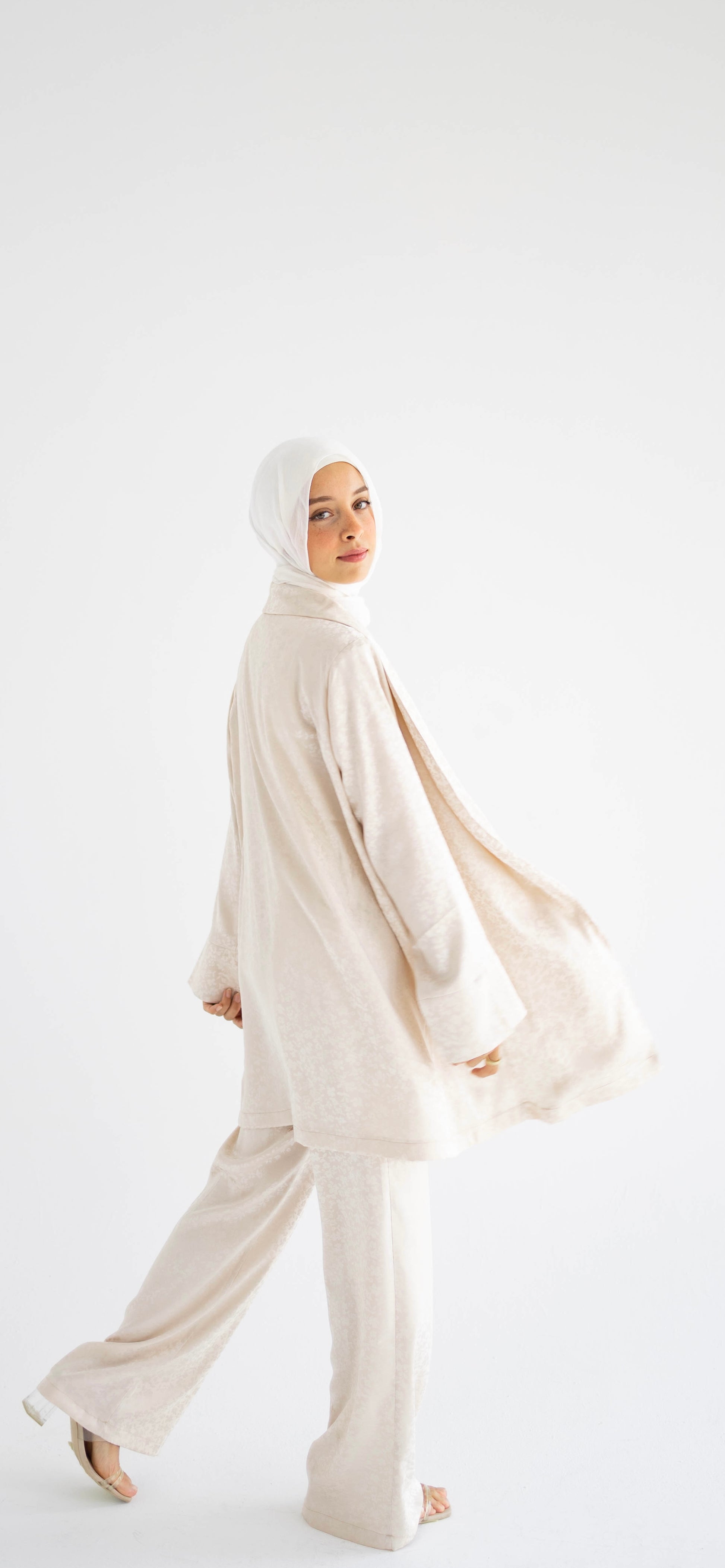 Creamy Floral Satin Blazer